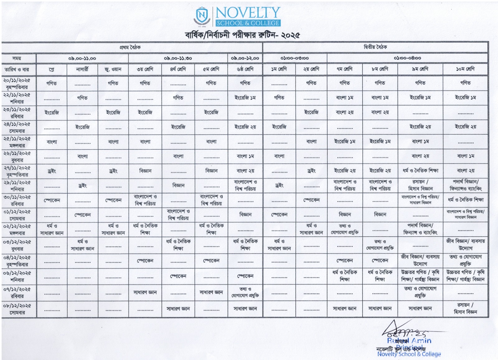 আগামী ২০/১১/২০২৫ইং তারিখে অনুষ্ঠিতব্য বার্ষিক পরীক্ষার রুটিন। Thursday, November 6, 2025